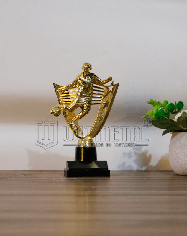 Los trofeos de fútbol metálicos son la máxima expresión de reconocimiento en cualquier torneo, desde competiciones locales hasta eventos profesionales. Su diseño sofisticado y duradero los convierte en una opción ideal para premiaciones de alto nivel. Personalizables con placas conmemorativas. ⚽🏆